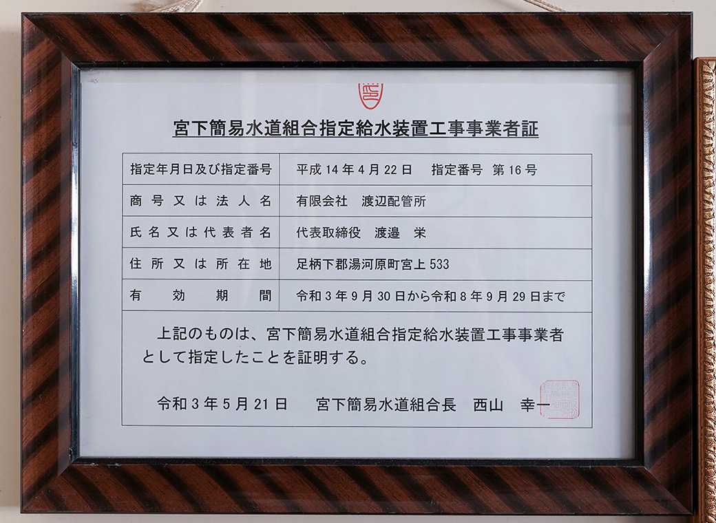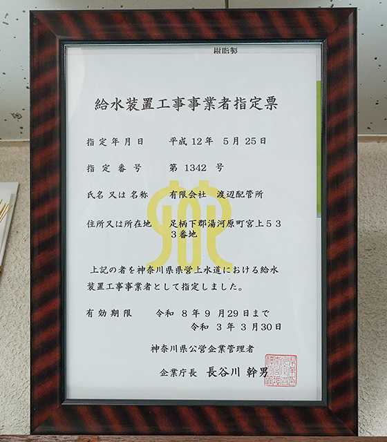 | 神奈川県県営水道指定給水装置工事事業者 | 第1342号 |