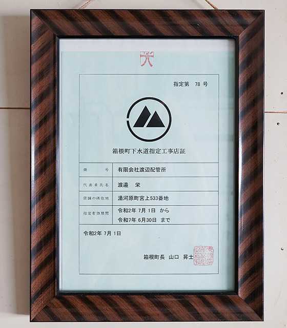 | 箱根町下水道指定工事店 | 第78号 |